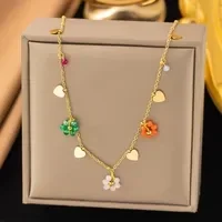 Elegante ketting van roestvrij staal met een goudkleurige afwerking, versierd met kleine bedeltjes en kleurrijke klavervormige hangers. Duurzaam, verkleurt niet en geschikt voor dagelijks gebruik. ✨